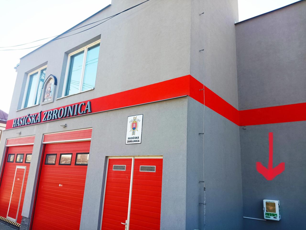 Upozorňujeme, že AED defibrilátor je umiestnený na budove Požiarnej zbrojnice, ktorá je 24 hodín monitorovaná a zaznamenávaná kamerovým systémom obce. ![]()
