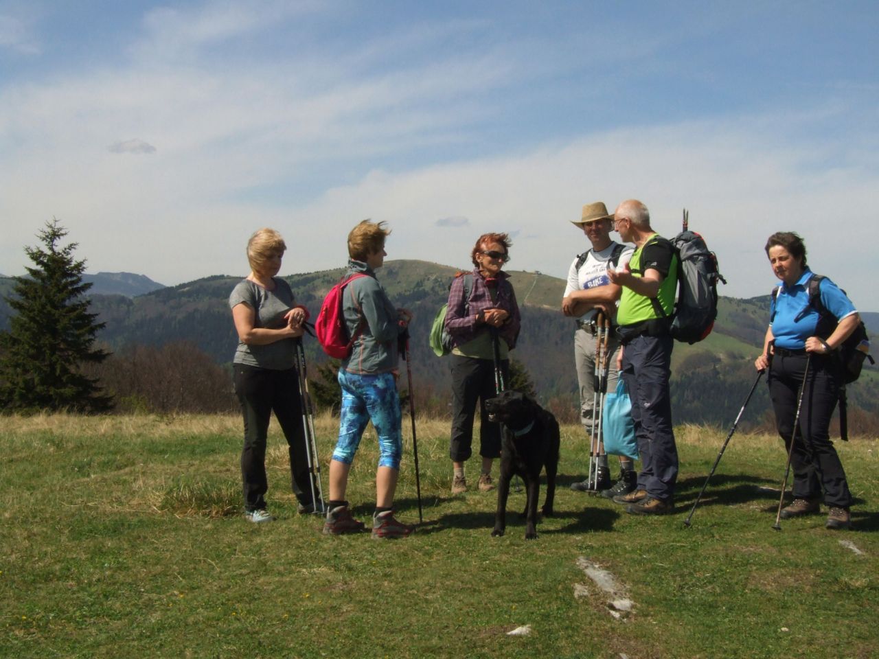 Vo sviatočný deň 1. mája skupinka 14 turistov a 2 psov vyrazili za poznaním do blízkeho okolia – do obce Moštenica. Trasou nás sprevádzal člen nášho oddielu a rodák z Moštenice Peter Heyduk, ktorý sa na túto akciu dokonale pripravil najmä preto, že túra viedla neznačkovanými chodníkmi. Celú trasu si vopred prešiel sám. Na túru sme nastúpili na námestí v Moštenici a cestičkou popri kostole sme sa dostali na rozhranie území Moštenica- Hiadel-Lučatín a ďalej sme vystúpili na Hradisko - Prvé skutočné osídlenie tejto oblasti bolo v roku 1200 pred našim letopočtom ľuďmi Lužickej kultúry. Archeologické nálezy, dokazujú, že žili na tomto kopci Hradisko. Po krátkom oddychu, sme sa presunuli na tzv. Letisko odkiaľ sme pokračovali krásnou alejovou cestičkou až do Sedla Zubová. Tam sme sa rozdelili na dve skupiny. Jedna skupina sa pustila smerom k Moštenickej Kyslej – tam ich tpra skončila, druhá sedem členná skupina so psom Jerrym pokračovali cez sedlo Zubová do sedla Hadlanka a odtiaľ smerom na Kečku. Všetky miesta nám náš sprievodca dokonale popísal-pomenoval, pospomínal na časy strávené v rodnej dedinke, na spôsob života najmä starých ľudí v Moštenici z čias minulých. Postupne sme sa presunuli pod Hrivkov, kde ako sa patrí sme sa patrične občerstvili – postaral sa o to najmä náš sprievodca tak, ako bolo vždy v Moštenici zvykom – na prvého mája sa opekala slanina, my preto, že sme mali ešte dlhú cestu pred sebou a bol pokročilý čas, upustili sme od opekania, ale gurmanská slaninka padla dobre všetkým. V kombinácii s nazbieraným medvedím cesnakom by nám ju mohli závidieť aj najväčší gurmáni. A po posilnení sme prešli sedlom Prehnutá (to sme už v Starohorských vrchoch) na najdlhší kopec- Vlačuhovo (niečo cez 1000mnm) – úžasné krásne miesto, ktoré nám ponúklo výhľady na masív Nízkych Tatier – Kozí chrbát, Prašivú...,a z druhej strany na Podkonické Pleše, Panský diel a v pozadí Kremnické vrchy, ďalej sme pokračovali cez Hrby, Skalku až sme sa dostali do miesta nášho východiska t.j. Moštenica - námestie.