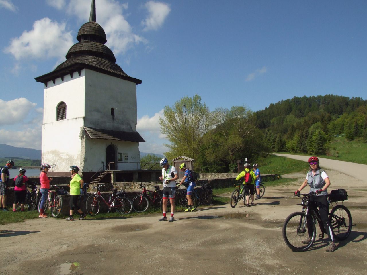 Prvý deň po honosných raňajkách (švédske stoly), ktoré pripravovali každé ráno naše turistky, zatiaľ čo chlapi turisti pripravili bicykle, sme vyrazili z Ivachnovej okolo Liptovskej Mary. Trasa viedla cez Liptovskú Teplú, okrajom Bešeňovej. Tu sme si pozreli jeden z travertínov, z ktorého vyvierala vody. Nasledovalo krátke stúpanie nad dedinky Vlachy časť Vlašky. V centre obce akurát varili guláš, Anka Š. chodila okolo kuchára a vyzvedala sa ako postupovať pri varení tejto maškrty. Z obce Vlašky sme prešli do obce Vlachy a stúpaním sme vyšli na priehradný múr Liptovskej Mary. Naskytli sa nám krásne výhľady na Choč, Západné Tatry, Kriváň, Nízke Tatry. Pokračovali sme obhliadkou ranogotického kostolíka Panny Márie z Liptovskej Mary, ktorý v súčasnosti je Múzeum liptovskej dediny. Cesta pokračovala obcou Bobrovník na hlavnú cestu do okresného mesta Liptovský Mikuláš. Tu sme dostali hodinu a pol na prehliadku mesta a na obed. Nakoniec sme však skoro všetci zakotvili v reštaurácii Rotunda na námestí kde sa naobedovali. Štefan sa priznal, že mu sfúklo jedno koleso, tak chlapi mu vymenili dušu a mohli sme pokračovať v ceste. Cez centrum sme prešli na kruhový objazd a nasmerovali sme sa na Palúdzku do Svätého Kríža. Tu sme navštívili v časti Lazisko drevený kostol, ktorý bol pôvodne postavený v Paludzi. Presťahovanie začalo v roku 1974 a slávnostná posviacka zrekonštruovaného kostola bola 22. 8. 1982.