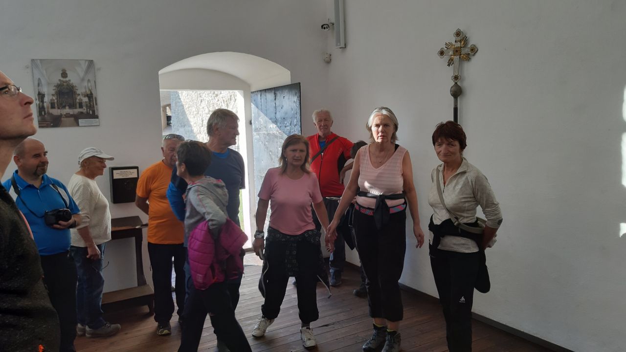 V nedeľu 20.10.2019 usporiadal náš turistický oddiel ľahkú túru v Pieninách. Zúčastnilo sa jej 16 turistov. Túru sme začali pri obecnom úrade v Jarabinej. V obci žije prevažne obyvateľstvo Rusínskej národnosti, preto niektoré tabuľky na úrade boli aj v azbuke. Popri kostole sme sa vybrali modrou značkou z dediny do kopca. O chvíľu sme narazili na vedľajšiu asfaltovú cestu, ktorá vedie do susednej obce Litmanová. Tu sa nám otvorili prvé výhľady na Vysoké a Belianske Tatry. Potom popri kríži sme odbočili na poľnú cestu. Z okolitých lúk boli výhľady na dedinu Jarabina a Ľubovniansky hrad. Po zlezení strmšieho svahu sme sa dostali ku tiesňave Jarabinský prielom ( Jarabinské tiesňavy ). Jedná sa o neveľké údolie okolo potoka Malý Lipník. Údolie má charakter tiesňavy až kaňonu podľa toho, v ktorej časti prielomu sa nachádzate. Prechádzka popri potoku Malý Lipník má svoje čaro. Je tu idylické ticho. Po príchode k prielomu sme sa v jeho začiatkoch tešili na nádherný kľukatiaci sa prielom. Tu sa potok výrazne zarezáva do okolitých, niekoľko desiatok metrov vysokých skál. Následne viedla cestička ponad potok. Čakalo nás ešte jedno klesanie ku prielomu z druhého konca. Nové pohľady na obrie kamenné hrnce a kaskády nás zaujali. Tiesňava má dĺžku takmer kilometer a šírku 100m, ktorá sa postupne zužuje až na 1 – 3 metre. V prielome sa nachádza 5 kaskád. Vysoké okolité steny majú výšku 10-20 metrov. Po prejdení tiesňavy sme vyšli na lúku Laz. Zo stálymi výhľadmi na okolie sme vyšli k lesu, krátke občerstvenie a o pár metrov sme prišli k studničke pod Hájom. Ešte pár metrov lesíkom a prišli sme ku kaplnke na hôrke Háj. Potom cez hornú lúku sme prišli ku skalnému útvaru Čertova skala alebo aj Dudkova skala. Obzreli sme si výhľady zo skaly a pokračovali sme lúkami k rázcestiu Čierťaže. Ukázali sa nám výhľady aj na Slovenský raj, Nízke Tatry a celú Ľubovniansku vrchovinu. Následne nás zaujali pohľady nad Kremnú, kde sa pásli kone a kravy. Stále po lúke sme sa dostali do sedla Vabec. Prišli sme ku skalke pod Vabcom, Tu sa nám otvorili výhľady na Levočské vrchy, Spišskú Maguru a na údolie rieky Poprad. Odtiaľto lesnou cestou sme začali klesať do dediny Jarabina. Dali sme krátku obednú prestávku a nastúpili do áut. Asi po 9 km sme prišli autami do dediny Chmeľnica. Poľnou cestou, popri rieke Poprad sme prišli k ďalšej atrakcii – skalnej ihly Čertova skala. Útvar z kameňa sa rozprestiera na ploche 0,14 ha a vypína sa do výšky asi 12 m. Jesenné farby a rieka Poprad vytvorili čarovné rozprávkové miesto. K pôvodu Čertovej skaly sa viaže povesť spojená s výstavbou Ľubovnianskeho hradu. Krátku povesť sme si prečítali, pofotili a vrátili sme sa poľnou cestou k autám. Autami sme prišli do mesta Stará Ľubovňa a išli prezrieť Ľubovniansky hrad. Čiastočne zachovaný a zrekonštruovaný hrad na vápencovom kopci (548 m n. m.), nad cestou a ľavým brehom rieky Popradu, čnejúci sa nad mestom Stará Ľubovňa, dominanta Ľubovnianskej kotliny. Na sever od hradu leží Ľubovnianska vrchovina, z hradu je viditeľný Široký vrch (884,5 m n. m.), mesto Stará Ľubovňa, obec Chmeľnica, ale aj Šibeničná hora, ktorá slúžila v stredoveku na výkon hrdelného práva. Najstaršou časťou hradu je kruhová veža s mohutnými opornými piliermi a priľahlý gotický palác. Obe pôvodne opevnené stavby, stoja na najvyššom bode brala, boli ohradené obvodovým múrom a do objektu sa vstupovalo bránou v múre. O niečo mladší je palác situovaný východne. Tieto objekty vytvárajú horný hrad s nádvorím. Na budovách sa zachovali obvodové murivá do značnej výšky a na gotickom paláci zvyšky renesančnej atiky i renesančných ostení okien a rímsy. Vzhľadom na terén sú ďalšie dve nádvoria riešené terasovito. Na druhom nádvorí pristavili k bráne budovu s pod bránim a obranu hradu zabezpečovala veľká delová bašta na východe a ušnicový delový bastión na západe pod bránou. Neskôr tu pristavali ďalší palác k obvodovému opevneniu na východnej strane. K objektu na západnej strane pristavili barokový palác (1642) a na terase kaplnku. Posledné, tretie nádvorie, je smerované na juhovýchod pred veľkou baštou a chráni vstup do areálu s bránou z roku 1664, ktorá mala padací most. Na múroch tohto nádvoria sa čiastočne zachovala atika. V niektorých miestnostiach sa zachovali valené a pruské klenby, v podzemí je zachovalá mučiareň. Medzi zachované časti hradu patrí aj hradná Kaplnka. V zachovanej časti hradu sa nachádza múzeum, súčasťou ktorého sú: historická expozícia (najznámejšie sú poľské korunovačné klenoty), expozícia dobového nábytku a chladných zbraní a expozícia zoznamujúca návštevníkov so životom a rodokmeňom posledných majiteľov hradu – rodu Zamoyských. Priamo pod Ľubovnianskym hradom sa nachádza expozícia Múzea Ľudovej architektúry tejto oblasti. Skanzen sme si obzreli z vrcholovej veže hradu. Po dvojhodinovej prehliadke hradu sme prišli do centra mesta. Tu sme sa v reštaurácii navečerali a túru oficiálne ukončili.