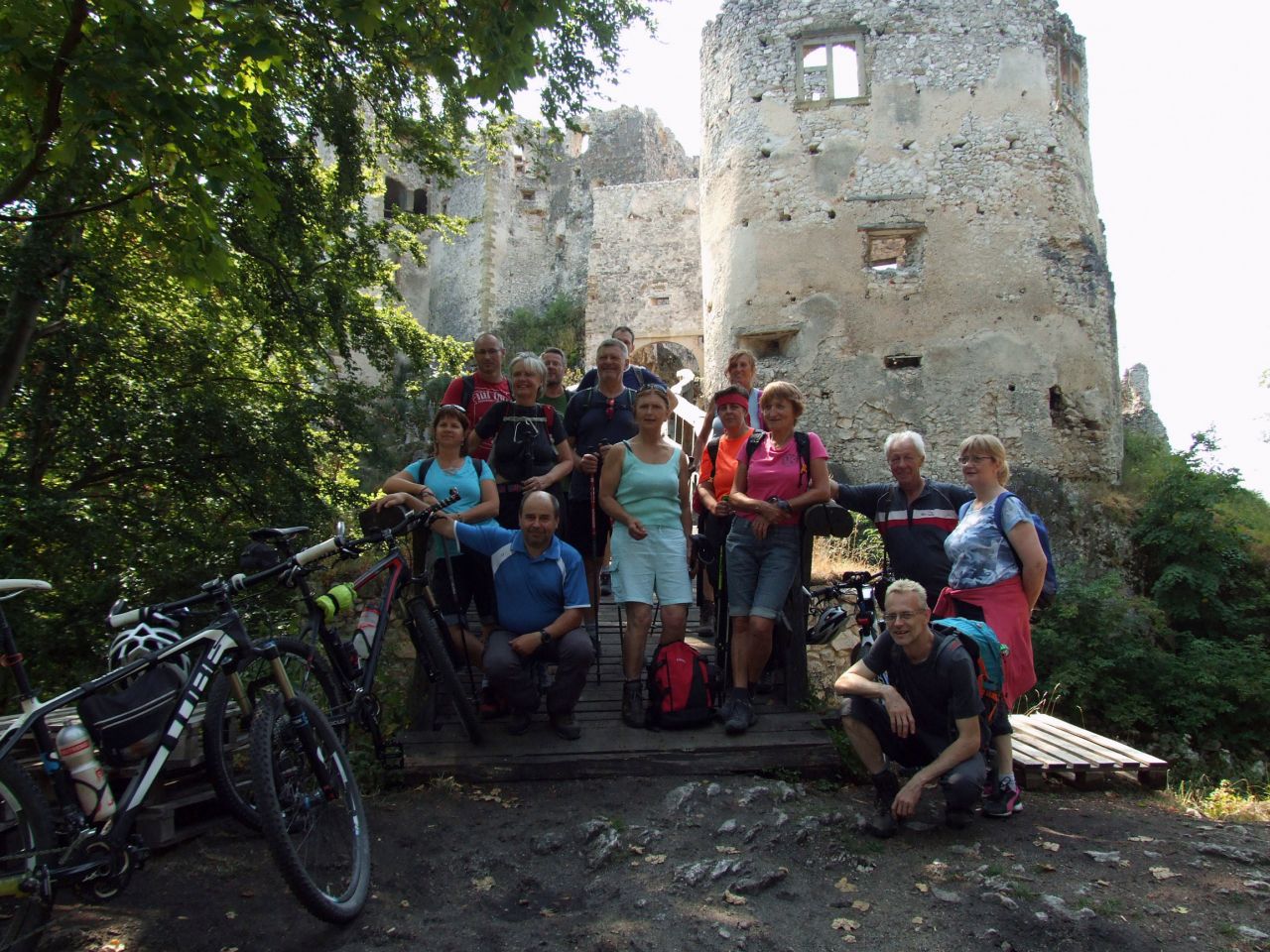 V nedeľu 28.júla 2019 sa stretlo 16 záujemcov, ktorí chceli absolvovať túru na Uhrovský hrad – Holý vrch – Jankov vŕšok – Uhrovec. Vyrazili sme na 3 autách v skorých ranných hodinách do Uhorského Podhradia. Prístup k hradu je po zelenej turistickej značke. Chodník je trochu prudší, ale je dobre značený. Avšak na začiatku trasy si treba dávať pozor na značky, pretože chodník náhle odbočuje z cesty pomedzi dva ploty. Preto sa treba dívať hlavne vľavo. Bolo čerstvo popršané a vzduch príjemne čerstvý, dokonca sparný. Po zhruba 45 minútach sa nám vynoril pred očami hrad. Zrúcaniny hradu vypínajúce sa vo výške 591 metrov nad morom, na bočnom hrebeni Nitrických vrchov (časť Strážovských vrchov), neďaleko obce Uhrovské Podhradie v ťažšie dostupnom teréne. Neskororománsky hrad vznikol pravdepodobne medzi rokmi 1251 až 1293. Možno predpokladať, že na stavebnom vývoji hradu sa podieľal Matúš Čák, ktorý ho v roku 1295 prevzal od Petra, syna Bašu. V roku 1389 daroval hrad a rozľahlé majetky cisár Žigmund Ctiborovi zo Ctiboríc, najbohatšiemu magnátovi západného Slovenska, ktorý hrad rozšíril. V 15. a 16. storočí sa viedli o hrad majetkovoprávne spory a často menil majiteľov, až napokon pripadol Zayovcom. Pre hrad začalo obdobie hospodárskej aktivity, čo sa opäť prejavilo na stavebných úpravách hradu. V období renesancie stál hrad bokom od centier veľkých bojových akcií. Vyhli sa mu turecké výboje, aj vnútorné nepokoje, ktoré ťažko postihli okolité teritórium. Zayovci sústredili svoj život do pohodlného, monumentálne upraveného kaštieľa v Uhrovci a na hrade udržiavali iba strážne a hospodárske objekty. Hrad postupne pustol a menil sa na zrúcaninu. Dnes sa o záchranu zrúcanín hradu zaujíma Nadácia pre záchranu kultúrneho dedičstva pod vedením predstaviteľa nadácie Petra Horanského. V roku 2004 padla časť eróziou narušeného muriva, ktorá zmenila päťpodlažný vežovitý objekt predbránia. Po obhliadke hradu sme pokračovali po modrom turistickom chodníku ďalej na Holý vrch, Jankov vršok kde je pomník padlým partizánom, bunkre a amfiteáter. Tu sme sa občerstvili a červeno značeným chodníkom sme sa dostali do obce Uhrovec. Nachádza sa tu rodný dom Ľudovíta Štúra, ktorý sme však nenavštívili. Rozhodli sme pre návštevu termálneho kúpaliska Pažiť, nakoľko bolo veľmi horúco. Pri príjazde začalo hrmieť tak veľa návštevníkov z kúpaliska odišlo, no my sme sa nedali odradiť a išli sme sa kúpať. Asi po hodinke, začalo pršať, blýskať sa, tak sme museli opustiť bazény. V stánkoch na kúpalisku sme si zajedli a okolo 18 hodiny sme vyrazili späť do Lučatína. Po ceste domov asi pri Žiari nad Hronom nás zachytila veľká dažďová búrka, no v Lučatíne pršalo len troška.