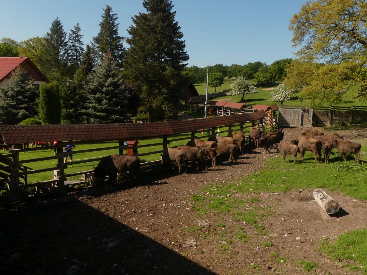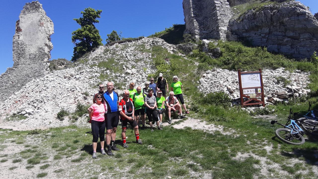 Prvý deň (sobota) po parkových raňajkách, ktoré pripravovali naše turistky, sme vyrazili z penziónu cez obce Hosťovce a Lovce do Zubrej zvernici vzdialenej asi 12 km. Zubry majú v rámci zvernice svoje obľúbené stanovištia, ktoré nie sú vždy prístupné ľudským očiam. Pri kŕmnych zariadeniach, kde si ich môžu návštevníci prezrieť, sa zdržujú väčšinou iba v čase kŕmenia, ktoré sa vykonáva 2 krát denne. V dopoludňajších hodinách o 9,00 hod. a popoludní o 14,00 hod. My sme stihli to prvé kŕmenie. Zubria zvernica v Topoľčiankach bola založená v roku 1958. Jej poslaním bolo prispieť k záchrane Zubra hôrneho pred vyhynutím, pretože v čase jej vzniku žilo na celom svete iba 150 jedincov tohto druhu. Zubria zvernica má výmeru 140 ha, z toho vlastné chovateľské jadro má výmeru 27 ha, zostávajúcu časť zvernice zaberá ochranné pásmo. Chovná časť zubrej zvernice je rozdelená na štyri oddelenia. Zubry žijú striedavo vo všetkých štyroch častiach. Zubriu zvernicu od jej založenia až doteraz obhospodaruje Lesný závod Topoľčianky. Zubor, ako najväčší európsky cicavec, dosahuje dĺžku 2,7 m a výšku 1,9 m. Býk môže dosiahnuť hmotnosť až 1500 kilogramov a môže sa dožiť až 30 rokov. Párenie zubrov prebieha v mesiacoch august až september. Zubrica rodí prevažne jedno mláďa. Nakoľko zubry prišli na kŕmenie neskôr, dievčatá nelenili a s našou Evkou si zacvičili. Po peknom divadle zubrích raňajok sme sa občerstvili aj my a zelenou cyklo značkou sme pokračovali na vodnú nádrž Žikava. V Brezinách sme prešli na turistickú červenú značku, ktorá nás doviedla na hlavnú cestu č. 511 do Partizánskeho. Po 500 m sme zbadali smerovky na hrad Hrušov, ktorý bol druhým cieľom našej trasy. Tu nás čakalo mierne stúpanie po štrkovej ceste. Hrad Hrušov tvoria zrúcaniny gotického hradu z 13.storočia, ktorý bol zničený v roku 1708. Zachoval sa pôdorys hradu, obytné jadro s predhradím a niektoré veže. Areál hradu má oválny pôdorys a tvorí ho prvé a druhé predhradie a vnútorný hrad. Okolo celého hradu sa nachádza masívna hradba. Na južnej strane vnútorného hradu je zvonku pristavená hradná veža s náznakom kruhovej cisterny, O hrad sa stará občianske združenie Leustach. Na hrade už dlhé roky prebiehajú rekonštrukčné práce, stabilizovali sa múry a mnohé objekty. Celé okolie hradu je pravidelne udržiavané, nachádza sa tu ohnisko a posedenie. Lokalita je ideálna pre rodinné výlety. Na lúke neďaleko hradu neprehliadnite pomník venovaný T. G. Masarykovi, ktorý toto miesto veľmi rád navštevoval. Dokonca tu údajne rokoval so svojimi ministrami. Z hradu Hrušov sme sa modrou cyklo značkou smerom na Hostie dostali do parku v Topoľčiankach. Cestou sme sa zastavili pri žrebčíne Backová kde mladé žriebätká šantili okolo svojich mám - kobýl. V Topoľčiankach sme na bicykli prebehli parkom a pozreli si Labutie jazierko, labuť tu nebola. Na obed sme zamierili asi 4 km od Topoľčianok smerom na Skýcov do areálu Pstruhový Raj. Tu sme si dali pstruhov a pivko a trochu sme si oddýchli. V areáli majú aj mini ZOO, ktorú sme si prezreli. Na cestu domov sme sa vybrali cez Machulince, Žitavany do Zlatých Moraviec. Prešli sme 48,2 km. Ľubica s Ľubom mali ešte málo, tak si išli pozrieť cez Čierne Kľačany Veľké Vozokany kde prebiehala súťaž králikov cez prekážky. Druhý deň (nedeľa) naším cieľom bola zrúcanina hradu Gýmeš. Ráno sme sa zbalili, lebo sme museli opustiť izby a batožinu sme nechali v jedálni. Cestu sme rozdelili na cyklistickú a to zo Zlatých Moraviec cez obce Sľažany, Ladice do Kostolian nad Tríbečom a z Kostolian žltou, turistickou značkou na Studený hrad a zelenou turistickou značkou na hrad Gýmeš. Gýmeš je hradná zrúcanina na strmom kremencovom kopci Dúň (514 m n. m.) na južnom svahu pohoria Tríbeč, zhruba 5 km na sever od obce Jelenec (Gýmeš). Zrúcanina je výraznou dominantou širokého okolia. Gýmeš je jedným z rodových hradov šľachtického rodu Forgáčovcov. Z hradu sme pokračovali na rázcestie Pod Gaštanicou a potom červenou značkou do obce Kostoľany pod Tríbečom. Bicykle sme mali uložené v jednom rodinnom dome a hneď na ceste Janka chytila defekt. Zatiaľ čo chlapi opravovali defekt, ostaní sme išli do hostinca v Lovciach na pivko a kávu kde sme ich počkali. Pokračovali sme tou istou cestou domov a defektom nebolo koniec, lebo teraz dostal defekt René. Našťastie chlapi ho rýchlo opravili a tromi stúpačkami sme sa dopravili do ubytovne. Tento deň sme toho veľa nenajazdili iba 28,9 km, no niečo sme aj našliapali. Výlet sme ukončili spoločným obedom u Gurmána. Naložili sme bicykle a batožinu a vydali sa na cestu domov. Do Lučatína sme dorazili v poriadku, za čo ďakujeme našim vodičom. Sľúbili sme si, že aj na budúci rok zorganizujeme takúto cykloturistickú akciu, no tentoraz to bude ....