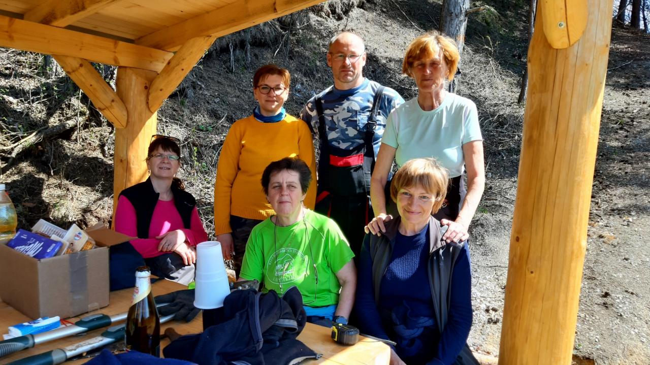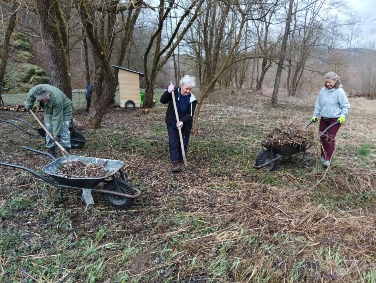 Organizovanie prác mal pod palcom Rudy Müller. Chlapi pracovali s pílami, vystrihovacími nožnicami a tiež fúrikmi. Vypilovali staré stromy, drevo bolo krásne uložené do „šichtúnov“ neskôr poslúži pri opekaní, možno pri varení gulášov. Menšie konáre boli pripravené na štiepkovanie. Ženy zase vyhrabali širšie okolie altánku, chodník a okolo miesta, na ktorom sa zvykne opekať.