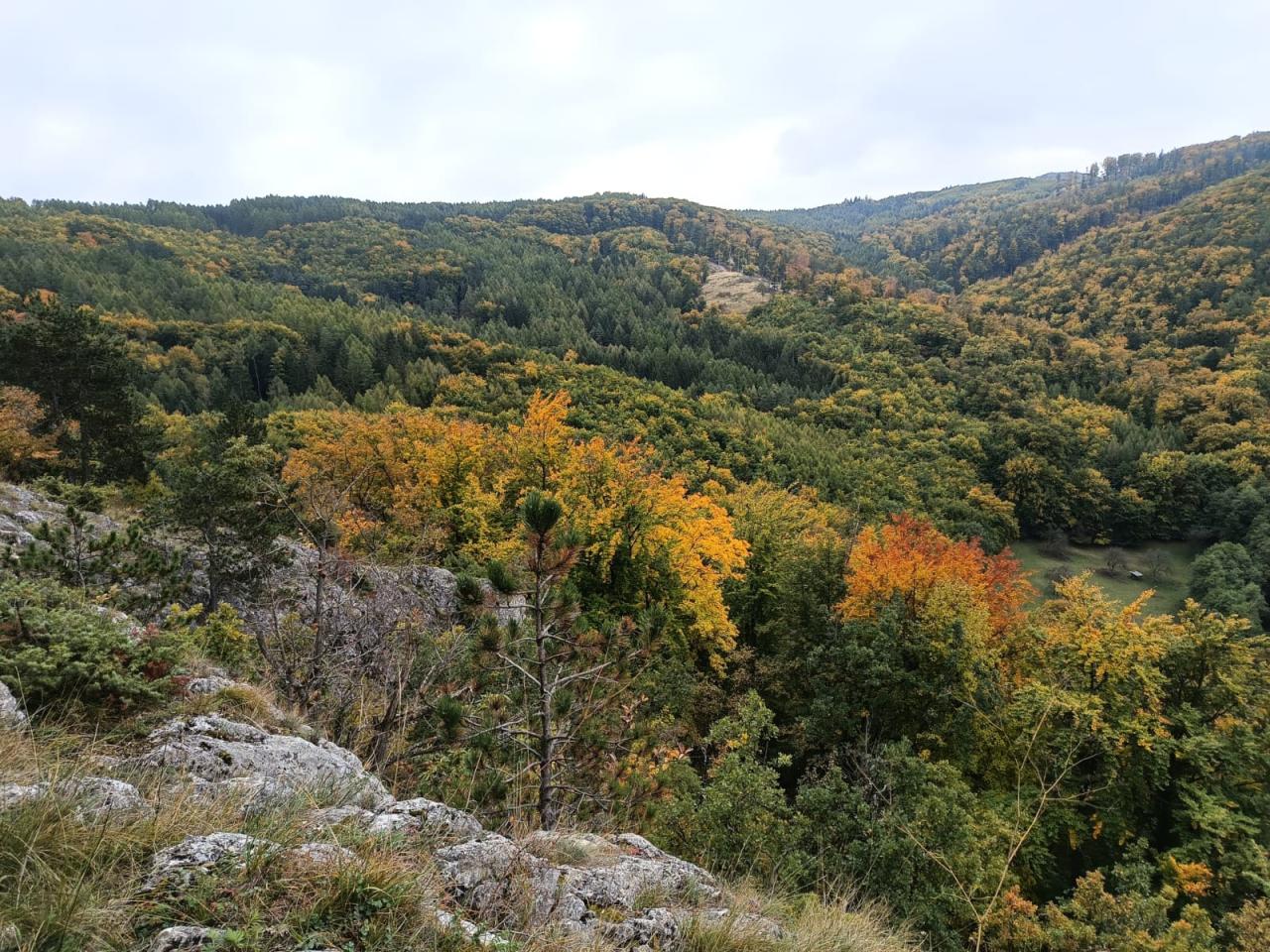 Ale po poriadku. Z Lučatína sme vyrazili o 7:30 na 4 osobných autách. Do V. Uheriec pred obecný úrad sme dorazili o 9:10. Tam sme sa stretli s predsedom OKST V. Uherce Jozefom Čmikom ako aj členom a našim sprievodcom Miroslavom Krištienom. Po úvodnom privítaní, predstavení odovzdal spomienkové predmety predseda KST Lučatín Peter Drozd obom členom OKST V. Uherce. Nasadli sme opäť do áut a už o chvíľku sme boli na miesta nášho štartu, ktorým bola lokalita za vodnou nádržou zvaná Pôždol. Od parkovali sme autá a po pár metroch vyrazili do stúpania. O pár desiatok minút sme boli na Brezovej, kde sme sa začali kochať prvými výhľadmi, hneď ako sme lapili dych. Čakala na už len rovinka po lúke, kde sme prišli k ruinám domov z niekdajšej osady po nemeckých obyvateľoch. Zišli sme na studničku, ktorá slúži ako zdroj vody aj pre neďalekú turistickú chatu, ktorou sa môže OKST V. Uherce právom pýšiť. Chatu sme vyobzerali, rozložili sme ,, co dúm dal“. Ešte predtým sme sa kochali výhľadmi na vrchy ,, Hornej Nitry“ a okolité lesy v jesennom šate. Po krátkej občerstvovačke sme mali ďalší náš ciel Dobrolínske skaly. Približne po 10 minútach nenáročného stúpania sme boli na skalách s výhľadom na Oseľný vrch 632 m.n.m. a Hrubý vrch 740 m.n.m. Urobili sme si fotku a po nie vábivom klesaní sme o ďalších 10 minút prišli až k Dobrolínskej jaskyni. Ešte stále bádaná jaskyňa nás zaujala napriek svojmu minimálnemu vstupu a dĺžke. Privítal nás v nej aj pán netopier. Postupne sme zišli od jaskyne do Drahožickej doliny a rovinatým terénom sme prišli krásnym jesenným lesom až ku autám.