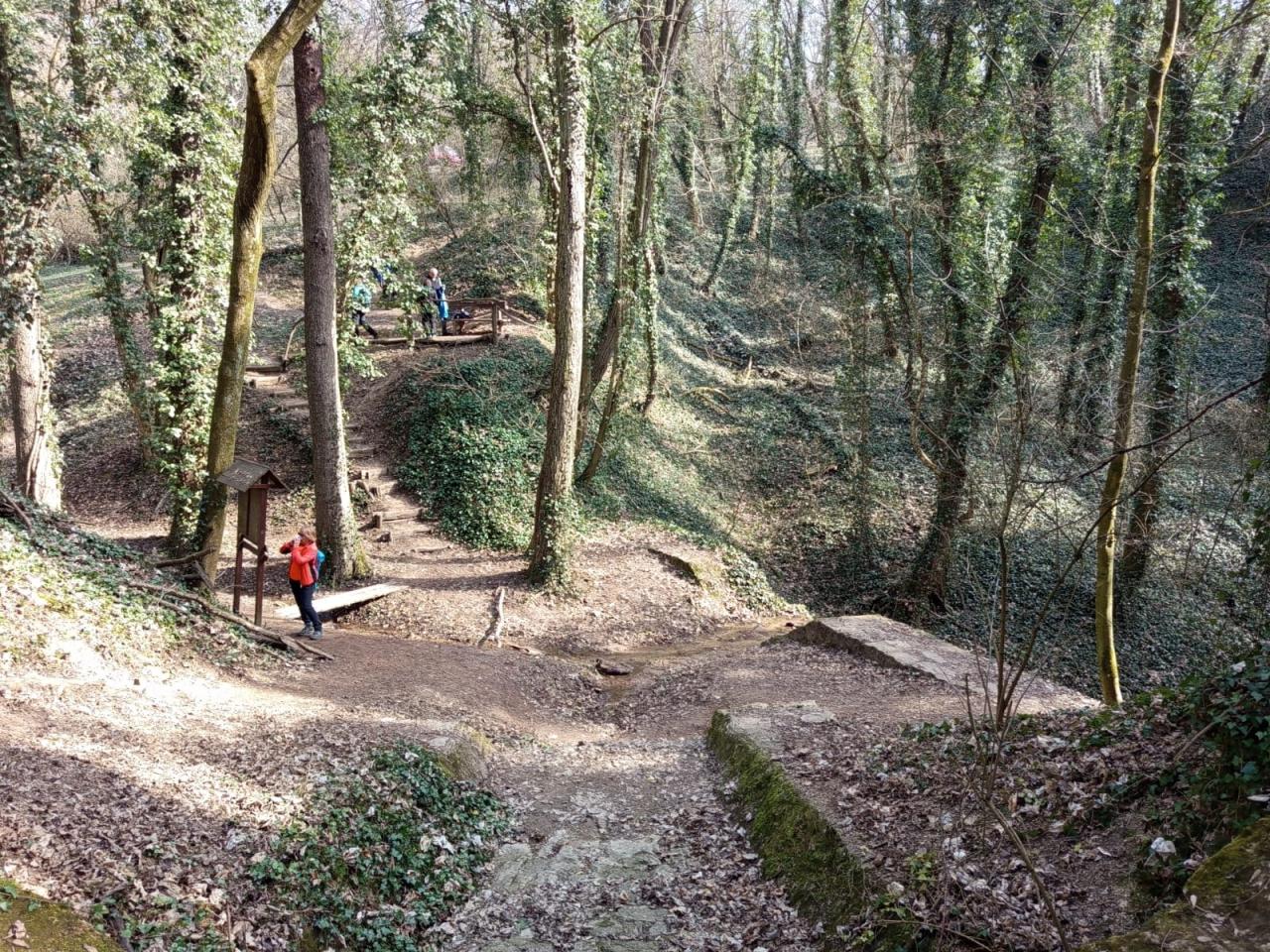 Od obecného úradu po asfaltovej ceste, kráčame rovno dolu kopcom do zákazu vjazdu a po pár metroch sme pri náučných tabuliach. Urobíme si spoločnú fotografiu a úzkou poľnou cestičkou prichádzame k zrúcanine románskeho kostolíka. Kostolík je zaujímavá stavba. Pochádza z roku 1299. Okolo neho je vybudované opevnenie, obranný múr so strieľňami. Slúžil ako útočisko v tej dobe pred nepriateľmi. Od kostolíka je krásny výhľad na Považie a na Beckovský hrad. Keď už kostolík máme poriadne pozretý a vyfotený klesáme lúkami do tiesňavy. Celú tiesňavu vymlela voda z miestneho potoka, ktorá sa postupne hlbšie a hlbšie zarezávala do zeme a odplavovala materiál na polia a lúky poniže tiesňavy. Vraj ešte pred 100 rokmi sa dalo prejsť po lávke z jednej strany na druhú ponad tiesňavu. Teraz je to už nepredstaviteľné. Celé brehy sú zalesnené a zarastené hlavne brečtanom. Atmosféra je tu skutočne úžasná. Vraví sa, že je to tu ako v pralese. Aj v lete počas najväčších horúčav je tu vlhko a príjemne chladno. Pozeráme si stavby z kameňa, ktoré sa volajú prehrádzky, ktorých účelom je zabraňovaniu odnášaniu naplavenín pri veľkých búrkach. Obdivujeme stromy, popínavý brečtan, skaly. Pohyb je tu nenáročný a zvládne ho aj bežný človek – nie športovec. Chodníček sa kľukatí pomedzi stromy, občas preskočíme potok a už sme pri najväčšej prehrádzke. Tá bola postavená v roku 1926 talianskymi kamenárskymi majstrami. Ide o zaujímavú technicko-stavebnú pamiatku. Schodíkmi prudko stúpame z tiesňavy na asfaltovú cestu a okolo obecného úradu zelenou turistickou značkou zahajujeme výstup na kopec Hájnica. Na jeho vrchu je malá rozhľadňa, ktorú je vidno už z diaľky. Cesta vedie priamo kolmo nahor. Po krátkom zahriatí pri výstupe do kopca sme pri rozhľadni. Vyzerá to tu skvele. Hneď sa škriabeme po schodíkoch na vyhliadku a pozorujeme okolie. Výhľady sú podobné ako zo zeme, pretože rozhľadňa je len 7 m vysoká. Po krátkom občerstvení sa rozhodneme, že ideme si pozrieť ďalšiu vyhliadku a to pri Salaši Beckov. Zbehneme dole na parkovisko, nasadneme do áut až sa zastavíme v cieli. Niektorí sú už hladní a rozhodli sa, že sa idú posilniť do reštaurácie – Salaš Beckov, ostatní pomaličky stúpame na ďalšiu vyhliadku.